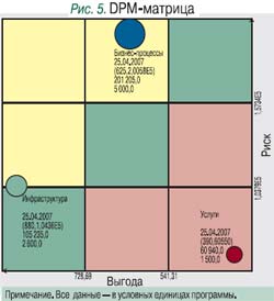 По методике DPM был составлен перечень сегментов рынка профессиональных услуг, в которых может работать аутсорсер. Данные экспертных оценок каждого сегмента вводились в систему Marketing Analytic. В итоге была построена DPM-матрица (рис. 5). Анализ ее сегментов говорит о том, что аутсорсинг ИТ-инфраструктуры привлекателен, потенциальный рынок велик, темпы роста высокие, слабых сторон и угроз со стороны конкурентов нет. Возможная стратегия компании – развивать данное направление.