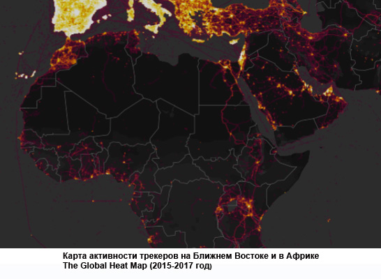 Рис. 2. Карта активности трекеров на Ближнем Востоке и в Африке, 2015--2017 гг.