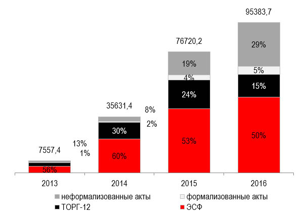 Рис. 1. Динамика юридически значимого электронного документооборота, 2013–2016