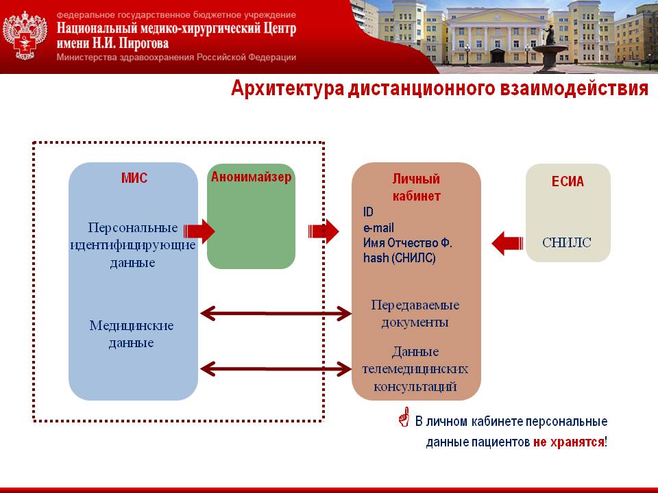При создании концепции телемедицинских услуг в Пироговском Центре принципиально важно было построить систему, отвечающую требованиям Федерального Закона от 29.07.2017 г. №242-ФЗ, а также ключевого подзаконного акта – Приказа Минздрава России от 30.11.2017 №965н «Об утверждении порядка организации и оказания медицинской помощи с применением телемедицинских технологий».