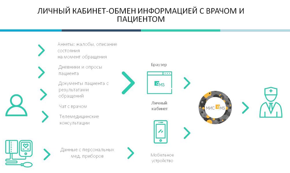 - личный кабинет для взаимодействия медицинской организации и врачей клиники.
