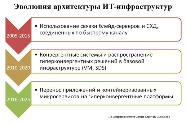 Гиперконвергенция – объединение ИТ-ресурсов в целостное решение с помощью типовых аппаратных блоков и программно определяемых устройств – стала одним из самых модных трендов в ИТ. Попробуем разобраться в преимуществах гиперконвергентных систем, направлениях дальнейшего развития решений и сценариях их использования в бизнесе.Этапы развития вычислительных инфраструктур