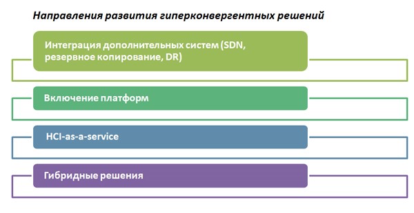 В единое целое можно объединить не только вычислительные мощности и системы хранения данных, но и виртуализированные сети, что уже становится стандартом для HСI. Предлагаются решения, интегрированные с системами резервирования и аварийного восстановления данных.
