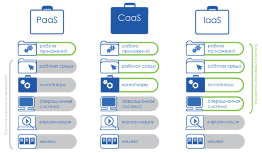 Рис. 3. Варианты классификации PaaS, CaaS и IaaS