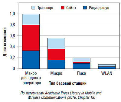 | Рис. 2. Структура относительной стоимости различных типов базовых станций |