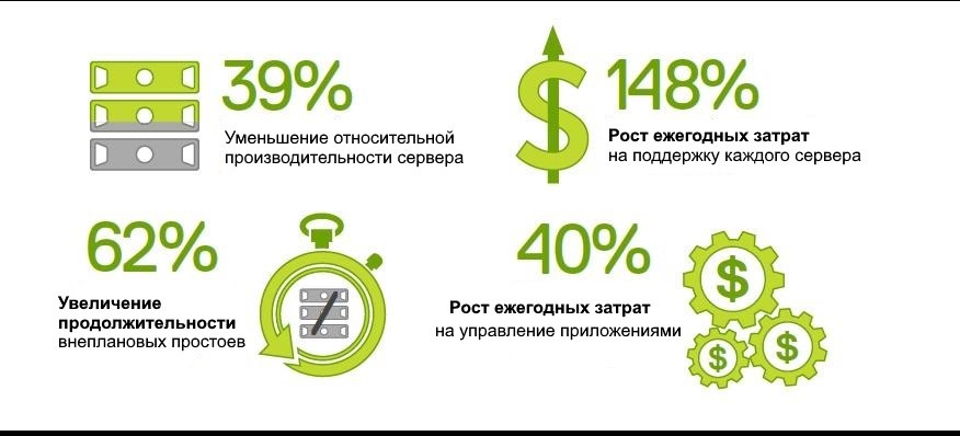 Технологии, которые когда-то были передовыми и обеспечивали эффективность и инновационное развитие ИТ-инфраструктуры, теперь могут стать для вас ловушкой. Медленно и неумолимо они поглощают ресурсы вашего дата-центра, а затем и расшатывают ваш бизнес. Попрощайтесь с ними.Устаревшая инфраструктура может снижать производительность, требовать дополнительной ИТ-поддержки, приводить к непредвиденным расходам на обслуживание и препятствовать достижению бизнес-целей. По данным аналитической компании IDC, если своевременно не модернизировать серверную инфраструктуру, то производительность ИТ-среды может снизиться на 39%, затраты на управление приложениями -- возрасти на 40%, а затраты на администрирование серверов -- увеличиться на 148%.
