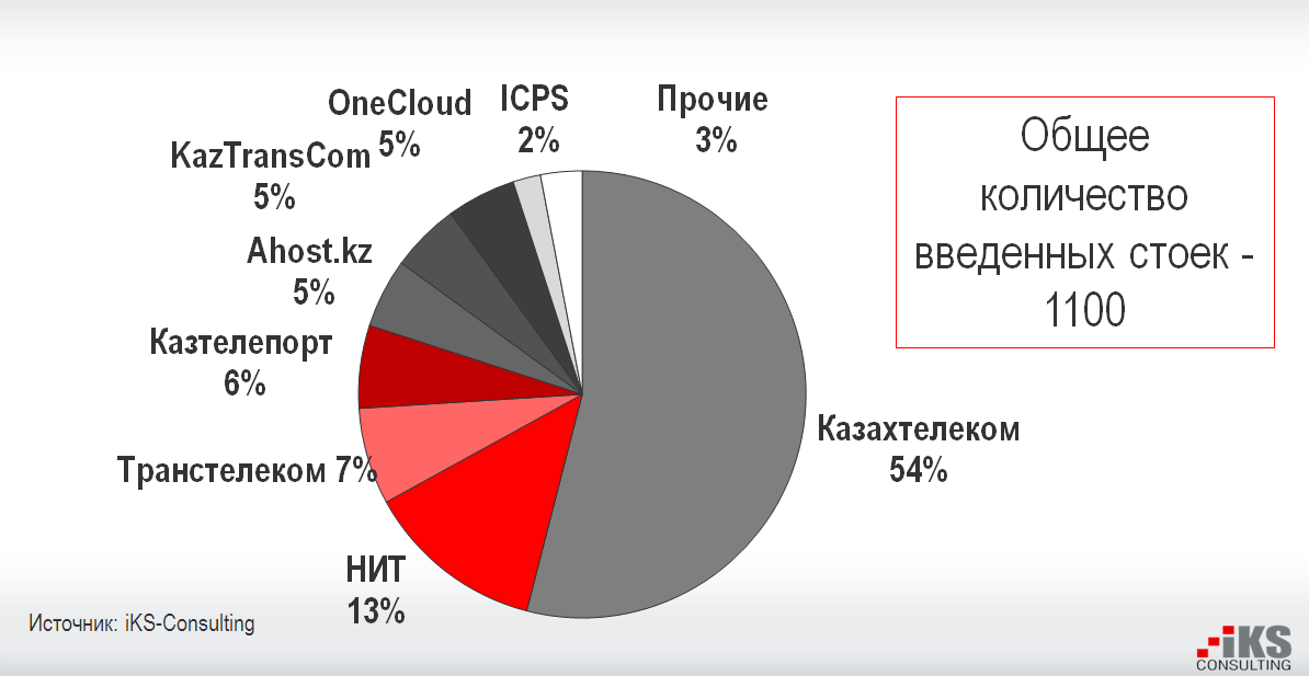 Доли ключевых игроков рынка коммерческих ЦОДов Казахстана