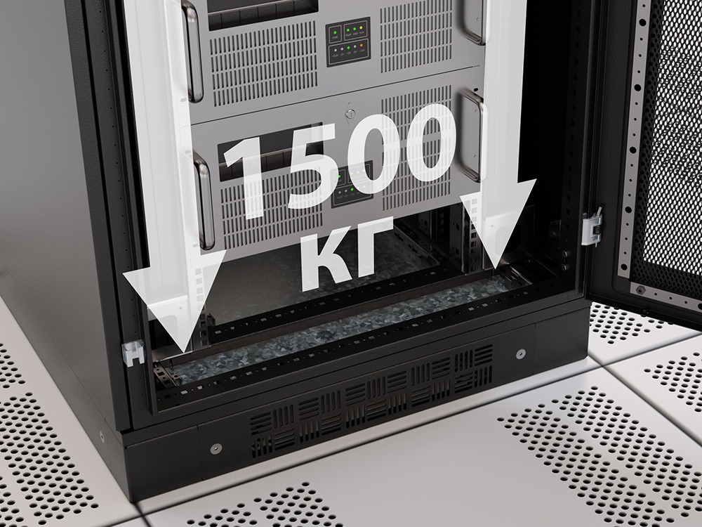 Когда заказчик или проектировщик определил требуемый ему функционал шкафа, вторым важнейшим параметром становится вес полезной нагрузки, которая может быть размещена в шкафу. Чем больше оборудования можно разместить, тем выше эффективность использования площади помещений ЦОДа и тем выше соответственно эффективность инвестиций.