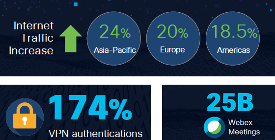 Зафиксированные в условиях пандемии двухзначные цифры роста Интернет-трафика и трехзначные – VPN-подключений свидетельствуют о важнейшей роли сетевой инфраструктуры в обеспечении функционирования экономики и жизнедеятельности людей. «Интернет стал той магистралью, которая позволила людям продолжать работу, обучение, общение со своими близкими и друзьями», -- отметил, выступая на CiscoLive 2020, главный директор по технологиям (CTO) компании Cisco в регионе EMEAR Чинтан Патель.