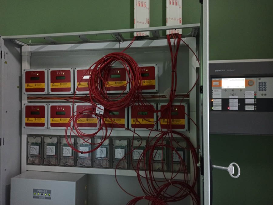 3. Систему пожарной сигнализации, интегрированную с системой газового пожаротушения. Также в нашем ЦОДе развернута система оповещения о перегреве силовых кабелей как часть системы пожарной сигнализации. Это система предварительного оповещения о возможной проблеме. Перегрев кабеля питания может свидетельствовать об излишней нагрузке на нем, о проблеме оборудования или контактов, о повышенной плотности прокладки силовых линий на каком-либо участке или же о локальном перегреве и возгорании. Термокабель проложен так, чтобы по схеме было понятно, какой силовой кабель и на каком участке перегревается и требует внимания. В пожарном щите установлены приемно-контрольные модули для термокабеля, с которых сигнал передается в общую систему управления и мониторинга пожарной сигнализации.