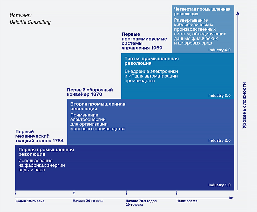 Термин «Индустрия 4.0» предложили в 2011 г. в Академии инженерных наук при правительстве Германии для описания перехода от традиционной промышленной автоматизации к внедрению сетевых киберфизических систем в процессы производства и сбыта предприятий обрабатывающей промышленности.