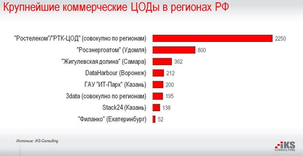 «Ростелеком» занимает лидирующие позиции на рынке региональных коммерческих ЦОДов. Остальные компании отстают с большим отрывом.