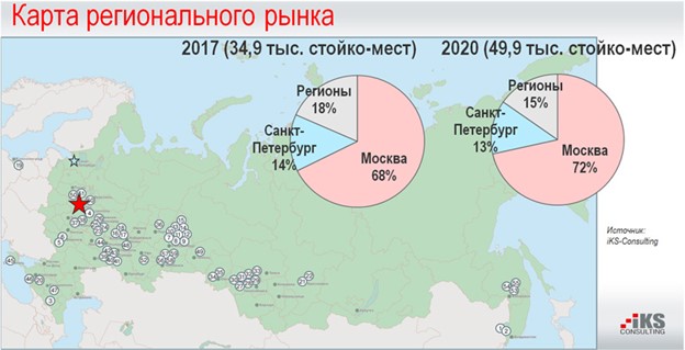 О необходимости строительства коммерческих ЦОДов в регионах, вблизи местных заказчиков, говорят с трибун конференций уже несколько лет, но пока процесс идет медленно. По данным iKS-Consulting, если в 2017 году на Москву приходилось 68% стойко-мест, то в 2020-м – уже 72%. Ситуация понятная: в столице больше финансовых ресурсов и клиентов, а при выборе места для строительства коммерческого ЦОДа инвесторы смотрят прежде всего на потенциал спроса.