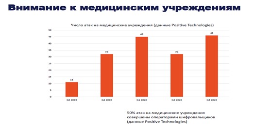 Медицинские учреждения, и так испытывающие огромные перегрузки во время пандемии, особенно уязвимы и зачастую не имеют сил для обеспечения информационной безопасности. Выход из строя медицинской информационной системы может привести к гибели людей. Медорганизация оказывается в отчаянном положении, ей необходимо принять срочные меры для решения проблемы, на что и рассчитывают требующие выкуп преступники.
