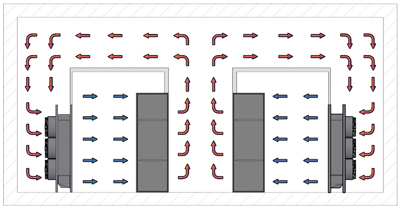 Рис. 2. Холодные стены забирают воздух из горячих коридоров и выпускают охлажденный воздух в холодный бассейн