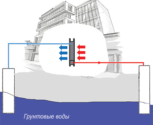 Рис. 1. Схема забора грунтовых вод для охлаждения здания