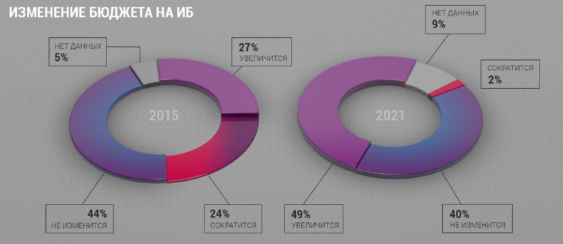 Обеспечивать безопасность стало намного сложнее, и руководители финансовых организаций осознали риски. «Индустрия повзрослела, начала осознавать стоящие перед ней вызовы и понимать последствия. Если 2015 году только 27% планировали увеличивать расходы на ИБ, то в этом году – уже 49%. Рынок стал прагматичным, люди считают деньги, которые могут потерять, и инвестируют средства, чтобы эти потери предотвратить», – подчеркнул Александр Лямин.