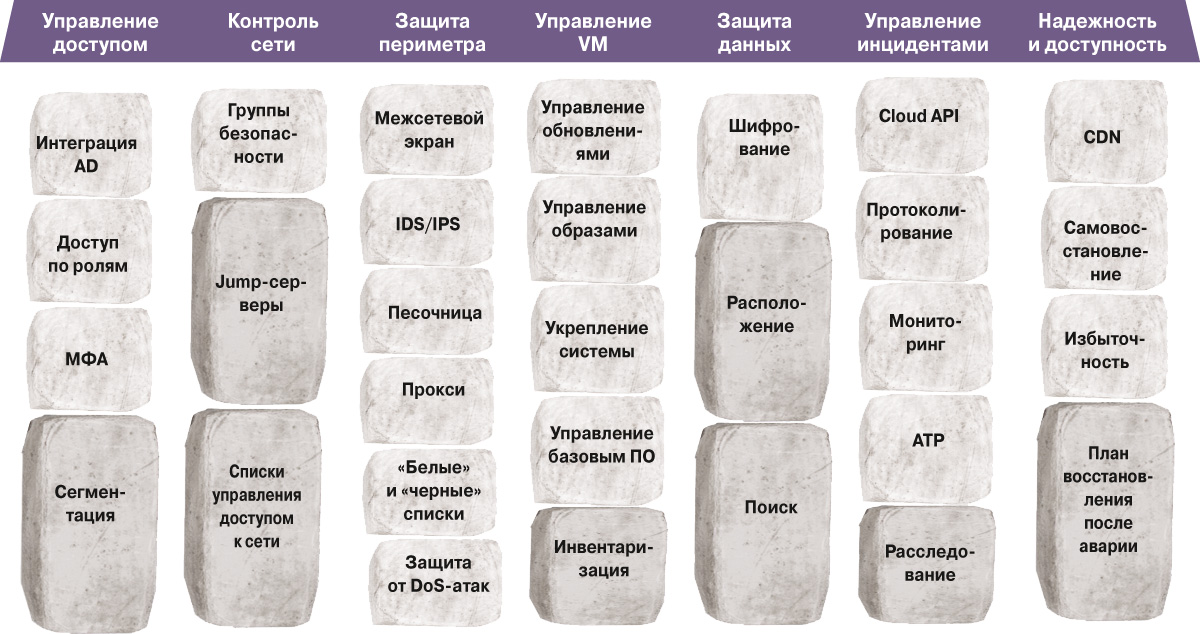 Используя подход агентства Moodys, занимающегося исследованиями и анализом рисков, можно выделить семь столпов безопасности SaaS (рис. 2). Их же можно считать семью столпами облачной безопасности в целом.