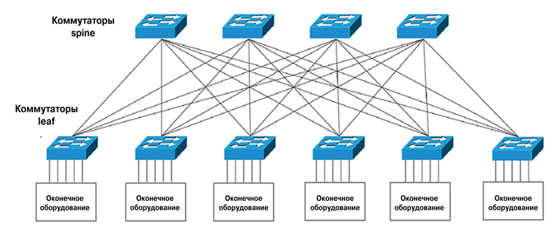 Рис. 3. Сетевая фабрика, имеющая архитектуру leaf – spine
