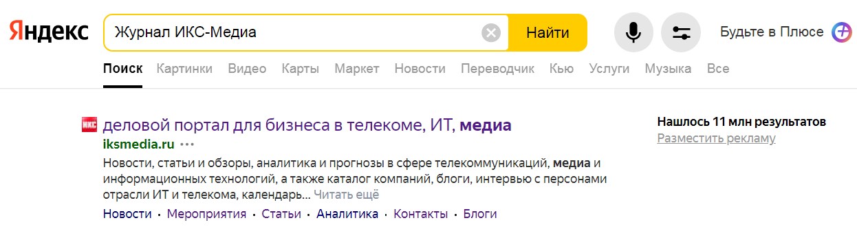 Рис. 2. Ответ на запрос «журнал ИКС-Медиа»