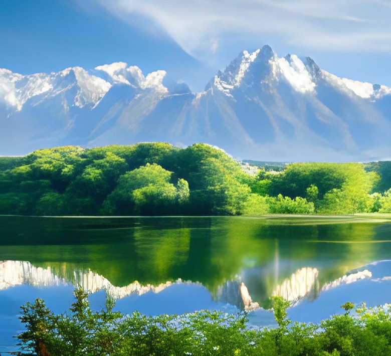 Рис. 4. Картинка, сгенерированная ruDALL-E по тексту «горный пейзаж»