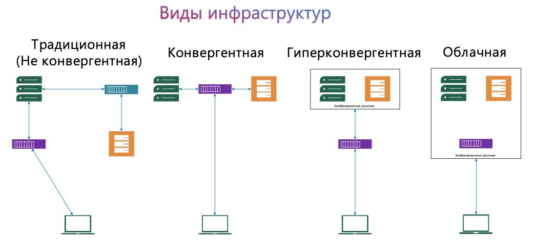 Также можно виртуализировать сети вплоть до уровня сервисов (рис. 3). Сегодня можно строить инфраструктуру любого типа: традиционную, конвергентную, гиперконвергентную или облачную (рис. 4). Помимо этого, сейчас существует спрос не только на базовый функционал, но и на катастрофоустойчивые решения, VDI и 3D VDI. Мы предполагаем, что в дальнейшем фокус будет смещаться в сторону развития, интеграции и поддержки этих продуктов.