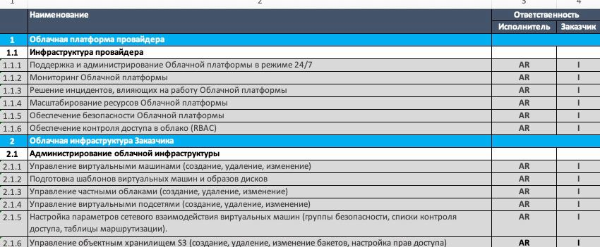 Неприятности чаще всего возникают из-за банальной дискоммуникации между командами, в которые входят сотрудники провайдера, поставщика решения, вендора, служб разработки и эксплуатации. Еще хуже, когда в подобных случаях кто-то пытается переложить вину за ошибку на коллегу. Чтобы этого не происходило, провайдеры уже несколько лет используют так называемые RACI-матрицы – формализованную методику распределения зон ответственности. Методика распространяется не только на исполнителя, но и на заказчика – в первую очередь в проектах, связанных с поддержкой инфраструктуры. Неважно, на базе чего она предоставляется – выделенного оборудования в ЦОДе, публичного или частного облака.