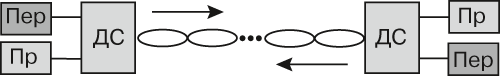Техника однопарного Ethernet (Single Pair Ethernet, SPE) была разработана достаточно быстро благодаря тому, что серьезный задел в этой области уже имелся. В наиболее скоростном варианте 1000Base-T1 однопарный Ethernet был получен фактически как «четвертинка» известной 10-гигабитной техники. Разработка свелась к пересмотру уровня интерфейса MDI и к отказу от схемы параллельной передачи из-за отсутствия требуемого количества цепей передачи. Двухсторонняя дуплексная связь по одной паре обеспечивается с помощью дифференциальной системы (рис. 2), впервые использованной еще в технике 1G Ethernet.