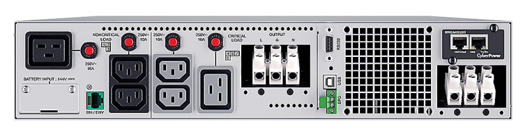 Модели отличаются высоким КПД (свыше 97% в экорежиме) и высокой перегрузочной способностью (выдерживают нагрузку 130–150% в течение 2 с), а также широким набором выходных разъемов (два разъема IEC C19, четыре разъема IEC C13, клеммная колодка) и портов (RS232, сухие контакты). Все выходные разъемы защищают от всплесков напряжения и обеспечивают батарейную поддержку. Среди семи разъемов есть группа управляемых розеток, что дает возможность по протоколу SNMP через единый интерфейс контролировать нагрузку, задавать приоритеты при настройке порядка включения или выключения питания, дистанционно управлять порядком перезагрузки подключаемого оборудования. Группу управляемых розеток составляют два разъема IEC C13 и один разъем IEC C19.