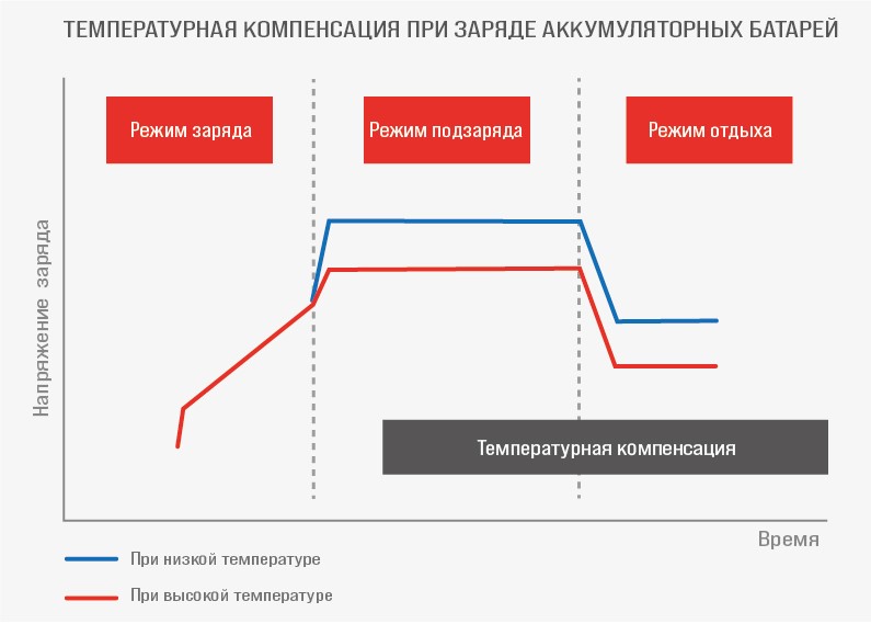 Рис. 2. Температурная компенсация при заряде аккумуляторных батарей