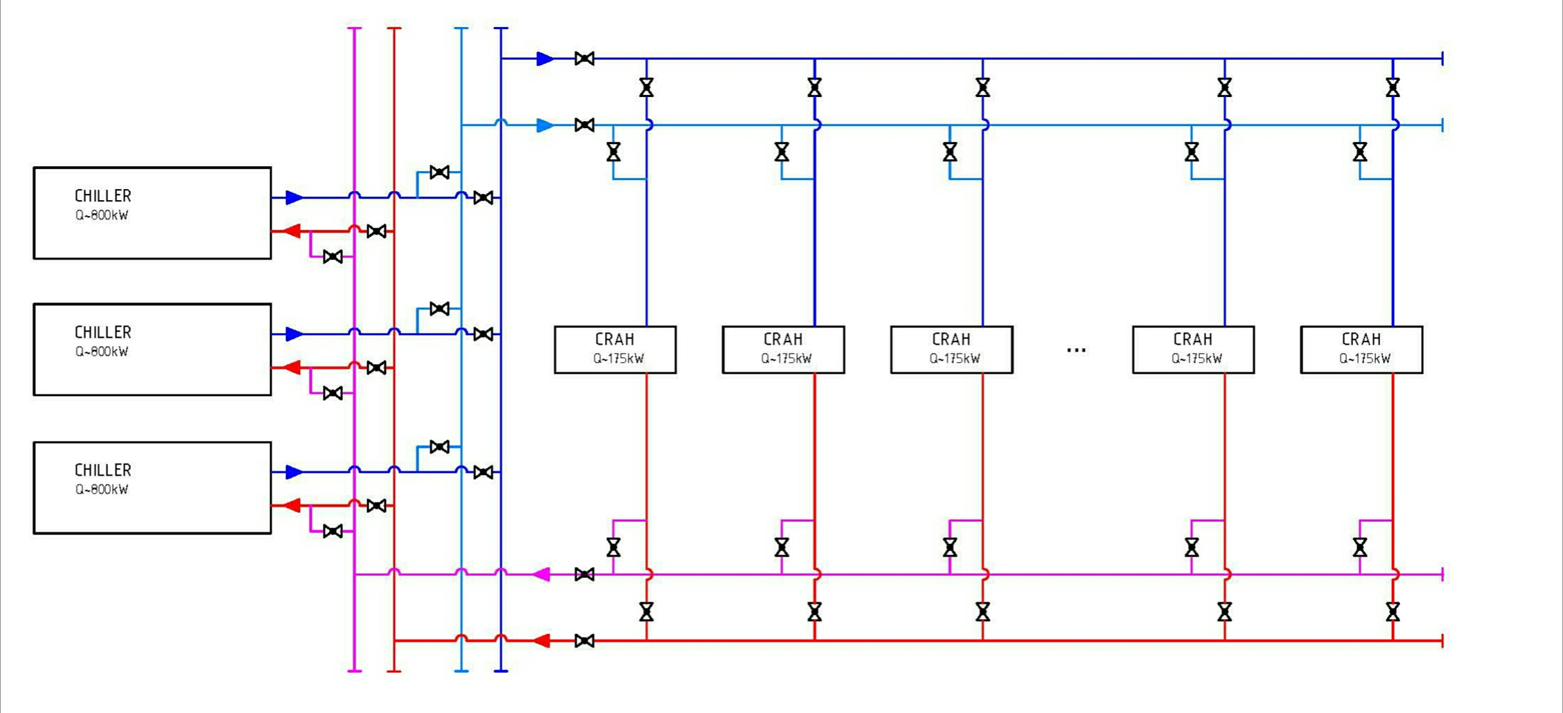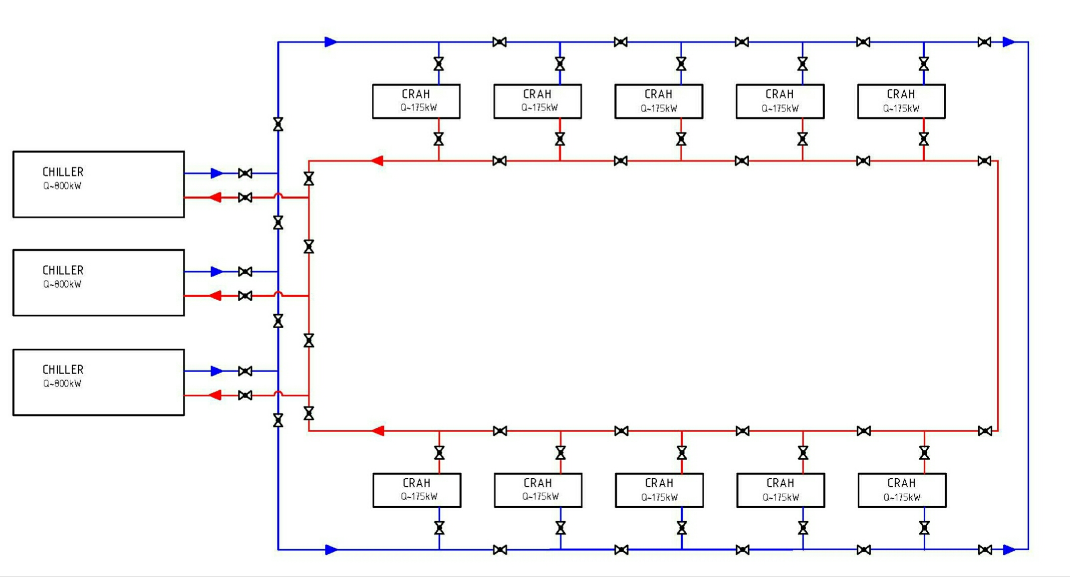 Рис. 2. Схема системы холодоснабжения с топологией «четыре трубы» Tier III