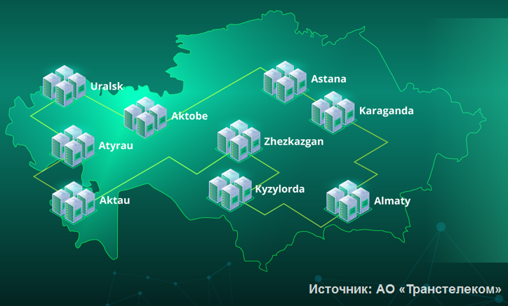 Рис. 3. Сеть ЦОДов АО «Казтелепорт»