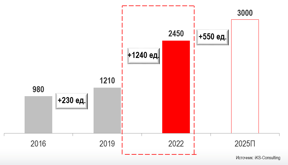 Как показал организованный «ИКС-Медиа» в Алматы форум Data Center & Cloud Kazakhstan, рынок коммерческих дата-центров и облачных сервисов Казахстана находится в стадии бурного роста. По данным, которые привела Светлана Черненко, глава представительства iKS-Consulting в Казахстане, за три года – с 2019-го по 2022-й – количество стойко-мест в коммерческих ЦОДах удвоилось и достигло почти 2,5 тыс. (рис. 1).