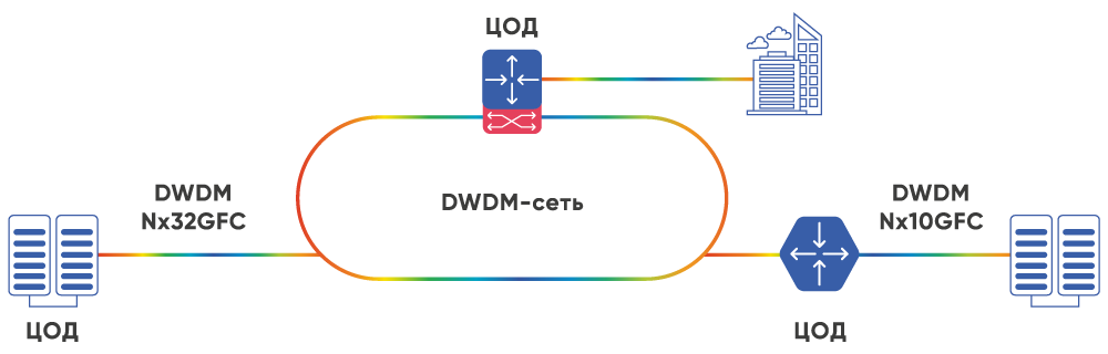 Схема построения DWDM-сети для межсоединений ЦОДов