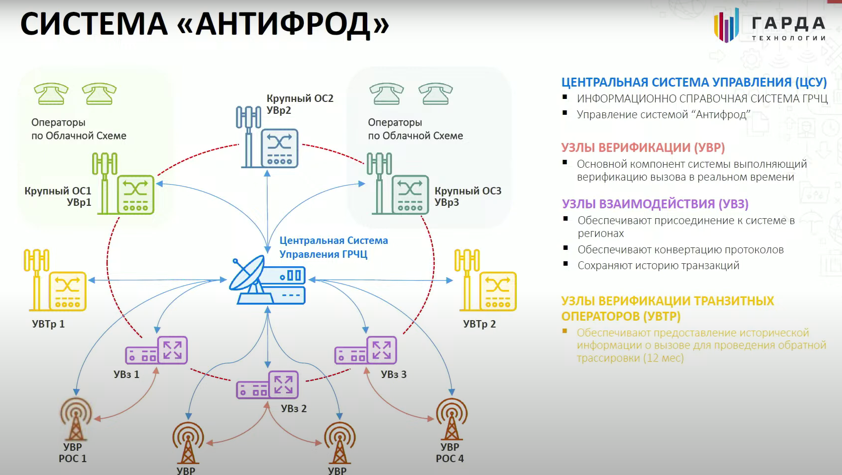 В одиночку проблему не может решить ни один оператор – нужен контроль всей телефонной сети. В 2021 г. были принят закон № 319-ФЗ от 02.07.2021, регулирующий проведение Роскомнадзором мониторинга с целью соблюдения операторами связи обязанности проверять достоверность сведений об абонентах. Для реализации закона подведомственный Роскомнадзору Главный радиочастотный центр (ГРЧЦ) стал создавать Единую платформу верификации вызовов (систему «Антифрод»), первая очередь которой введена в эксплуатацию в декабре 2022 г. Основные цели платформы определены законом: