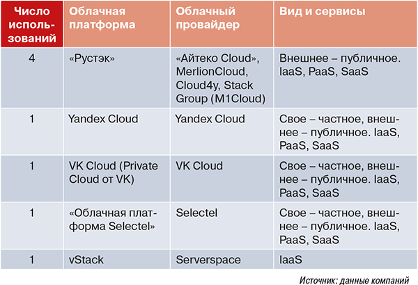 Поэтому уже само использование платформы в публичном облаке (табл. 3) много говорит о ее надежности и безопасности, использование несколькими провайдерами – о наличии рыночного решения.