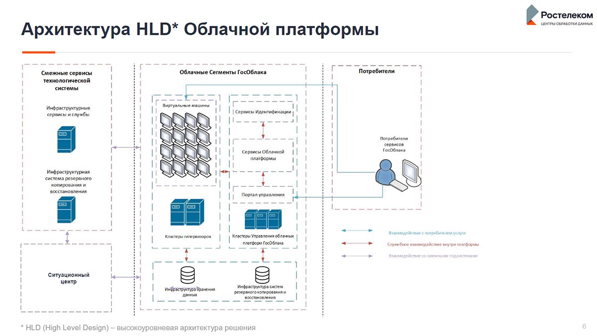 Эксперимент начался в 2019 г. «Принципы, заложенные в тот момент, были достаточно революционными, раньше никто такого не делал», – дал оценку проекту технический директор «Ростелеком-ЦОД» Алексей Забродин. Первый принцип гособлака – фиксация SLA на конечные сервисы инфраструктуры, а не на время бесперебойной работы оборудования. Второй – переиспользование ресурсов. До этого купленное для одного ведомства оборудование могло храниться в коробке, в то время как было совершенно необходимо не имеющему достаточного административного ресурса другому.