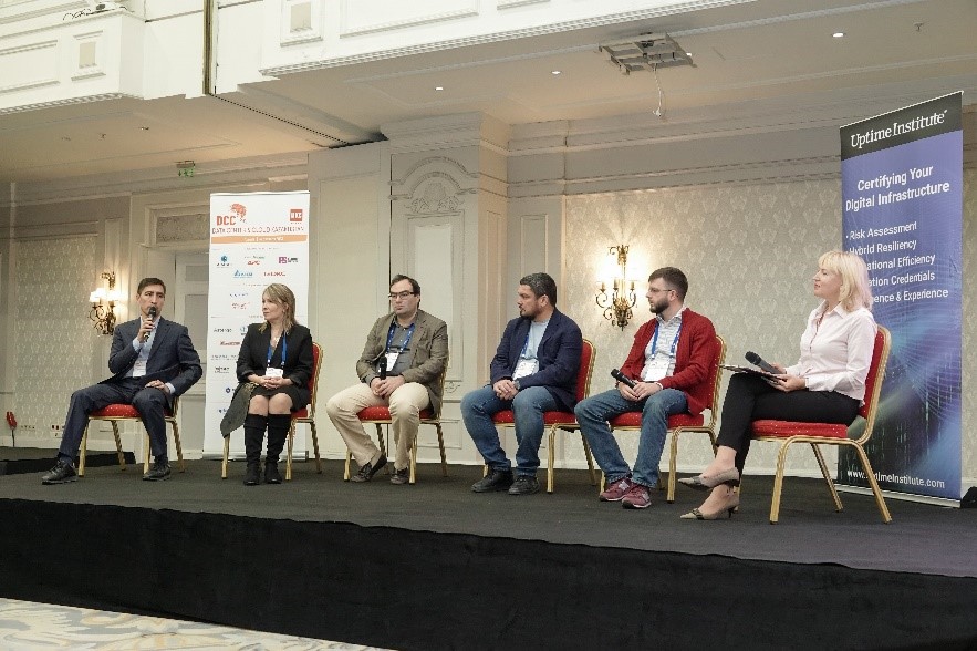 Панельная дискуссия. Слева направо: Абилкаир Болатбаев (МЦРИАП РК), Светлана Черненко (Ассоциация операторов ЦОД и облачных сервисов РК), Денис Вайнер (Schneider Electric), Евгений Вирцер («Свободные Технологии Инжиниринг»), Илья Хала (3data), Татьяна Толмачева (iKS-Consulting)