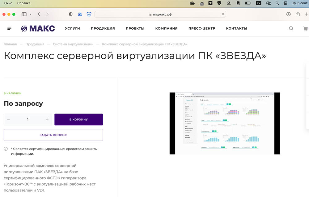 На сайте вендора кроме описания ОС различного назначения нет информации о других решениях, которые необходимы для построения корпоративной инфраструктуры ВРМ, создания высокодоступных и катастрофоустойчивых сред.