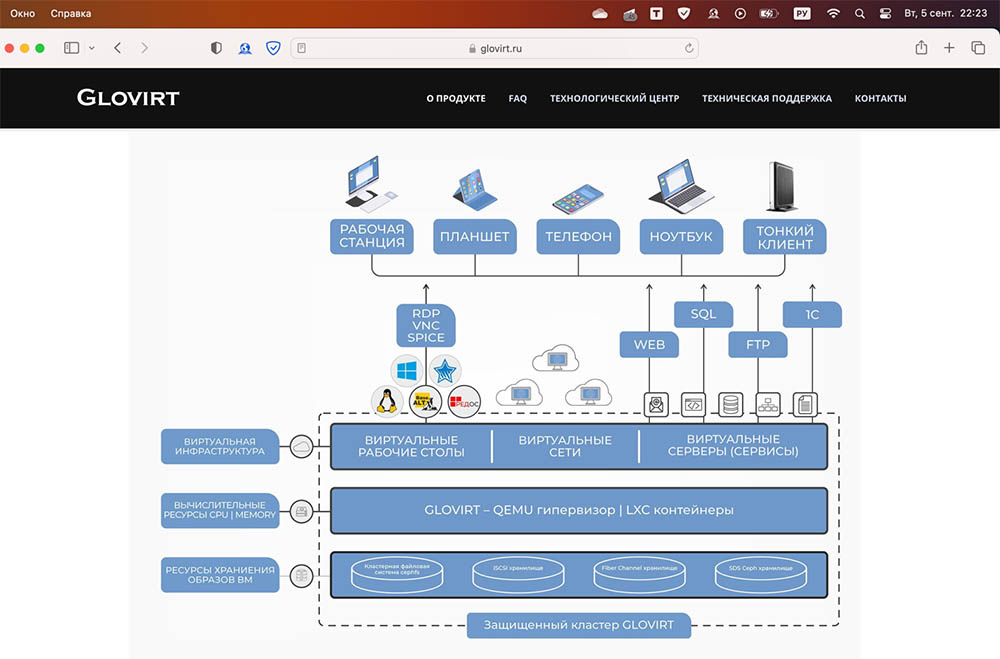 | ПАК «Горизонт-ВС» | ИЦ «Баррикады» | VNC (для администрирования), SPICE (для подключения терминалов) |