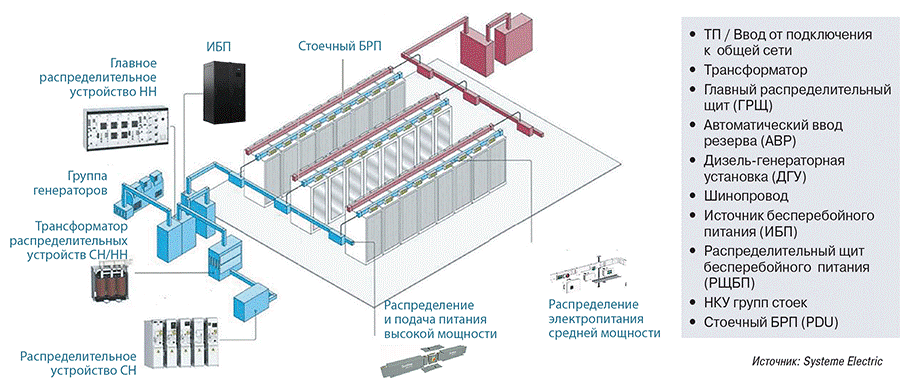 Рис. 1. Основные элементы системы электроснабжения ЦОДа