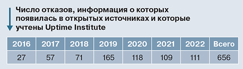 Табл. 1. Источники информации, используемые Uptime Institute для отслеживания отказов в работе ИТ-систем и ЦОДов