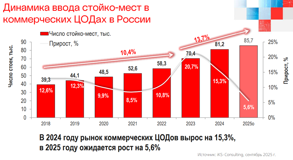«Часть проектов заморожена, но крупные операторы как строили ЦОДы, так и строят. И на них есть спрос. Судя по проектам, которые сейчас в пресейле, понимаем, что ЦОДы будут вводиться в строй. Хотя коммерческие ЦОДы не развиваются теми темпами, которыми должны бы развиваться, рост данных не остановить», – коммерческий директор C3 Solutions Роман Монахов тоже настроен оптимистично.
