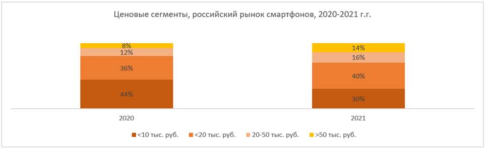 Российский рынок смартфонов в 2021 году в деньгах показал рост примерно на 28%, достигнув рекордных 730 млрд рублей. Порядка 50% продаж в натуральном выражении пришлось на китайские бренды.