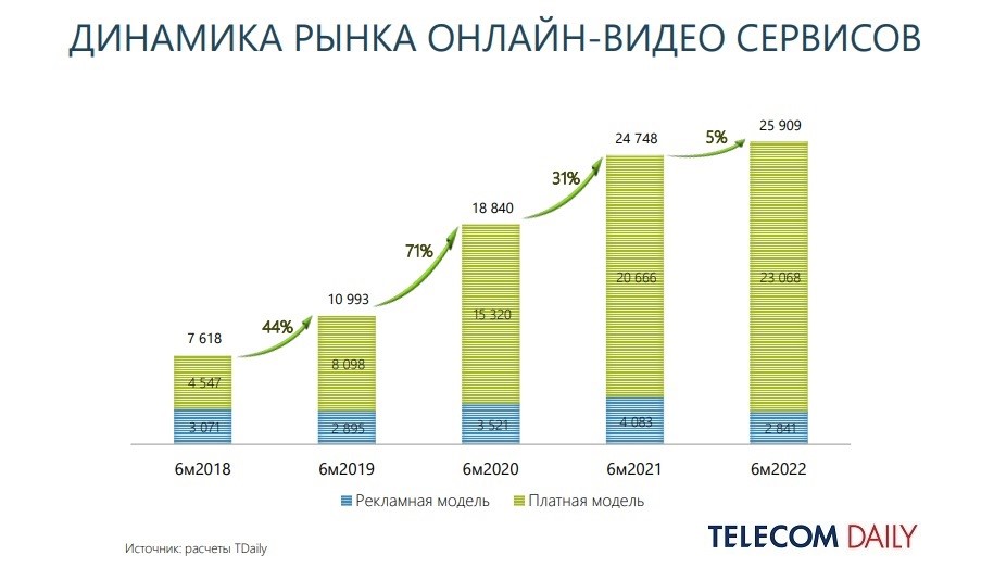 например, по итогам 2021-го российский ОТТ-сегмент вырос на 41%.