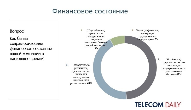 На этом фоне показательно, что и общее финансовое состояние компаний за год ухудшилось. Сразу 43% отмечают, что им удается поддерживать, но не развивать бизнес (таковых 30% по итогам 2021), еще 8% говорят об острой нехватке средств (6% годом ранее). До 49% сократилась доля операторов, которым средств хватает в том числе на развитие (против 59% годом ранее).