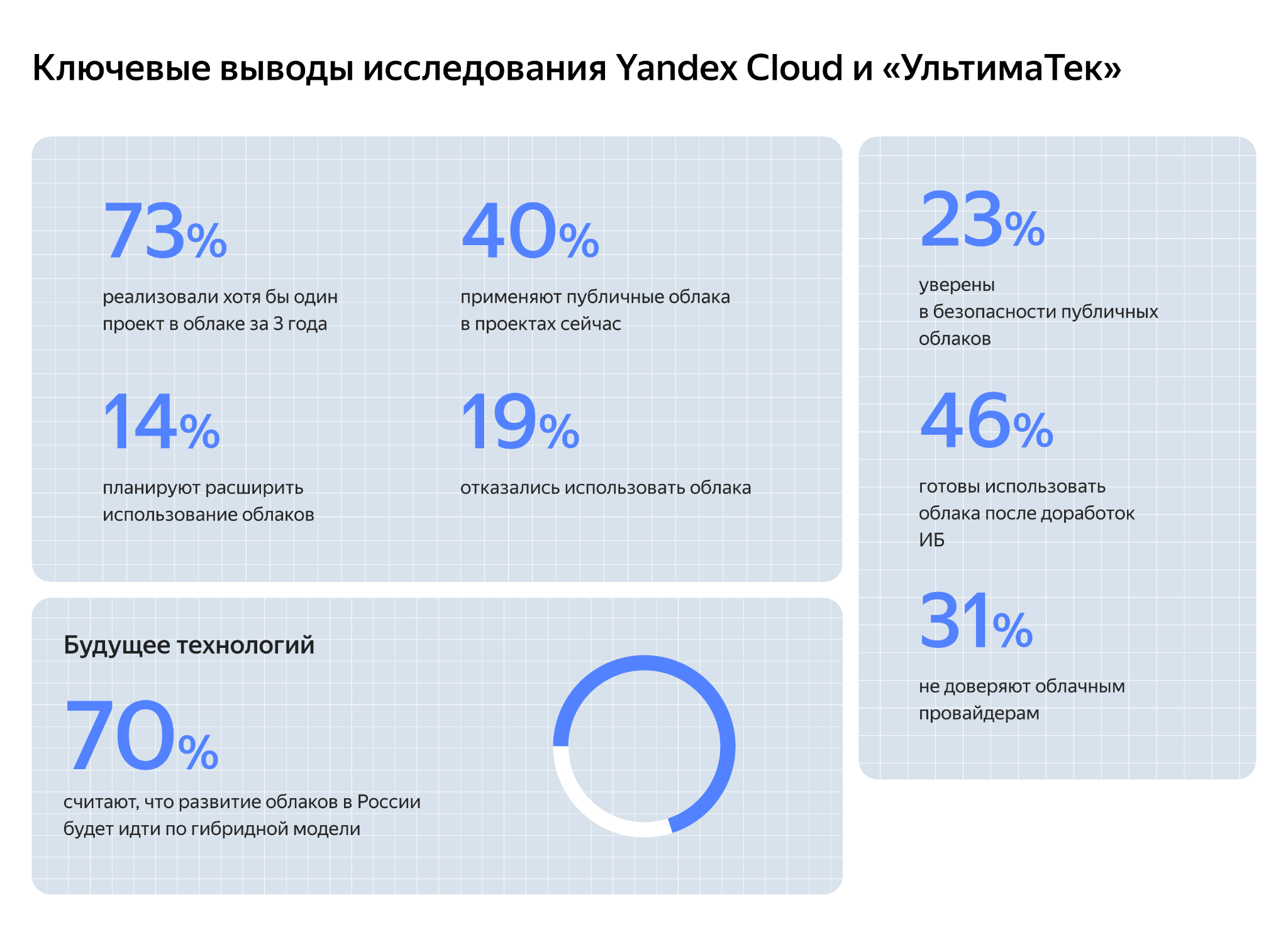 По данным исследования Yandex Cloud и промышленного интегратора «УльтимаТек», за последние три года две трети опрошенных промышленных компаний реализовали в облаке хотя бы один проект.