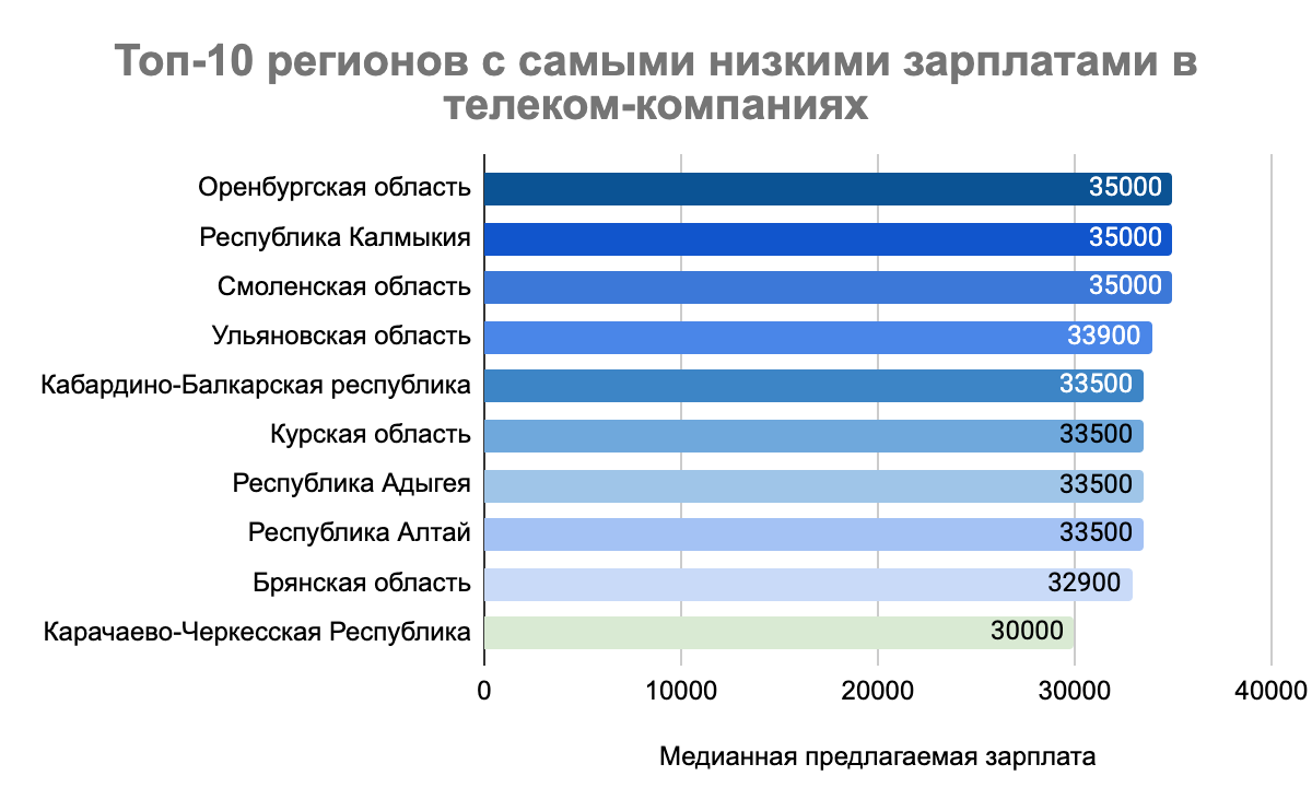 Начало 2023 года стало позитивным с точки зрения повышения зарплат: 66 регионов увеличили зарплатные предложения сотрудникам, еще четыре сохранили оклады неизменными. Наиболее заметное изменение зарплаты на телеком-рынке произошло в республике Северная Осетия — Алания, где рост за год составил более 30%. В Тюменской области, которая замыкает десятку регионов с самым быстрым изменением зарплаты в телекоме, оклады увеличились на 13%.