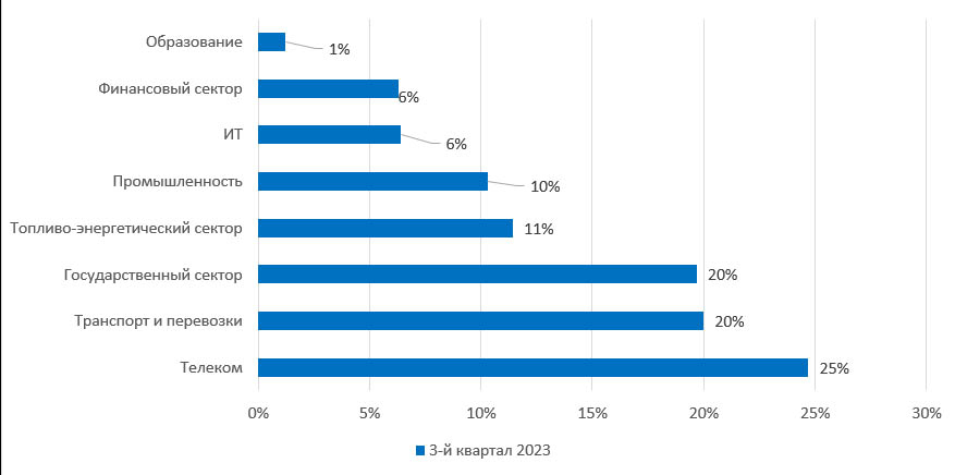 Шестое и седьмые места занимают ИТ- и финансовые сектора, которые также являются традиционными целями злоумышленников.