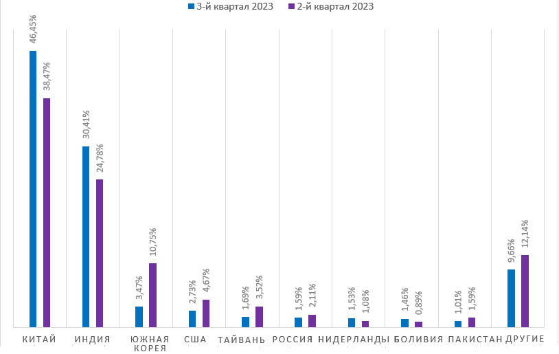 В рейтинге стран, из которых атакуют наши ловушки (речь о попытках захватить управление ловушкой и расширении ботнет-сетей), в лидерах по-прежнему Китай (46,45%). Свои показатели увеличила Индия (30,41%, против 24,78% ранее), значительное снижение показала Южная Корея, которая удерживает третье место (показатель около 3,5%). Также, снижение относительных показателей демонстрируют США, Тайвань и Россия, хотя по абсолютным значениям они по-прежнему удерживают свои позиции. Неожиданно показали рост Нидерланды (с 1,08% до 1,53%) и Боливия (с 0,89% до 1,46%).